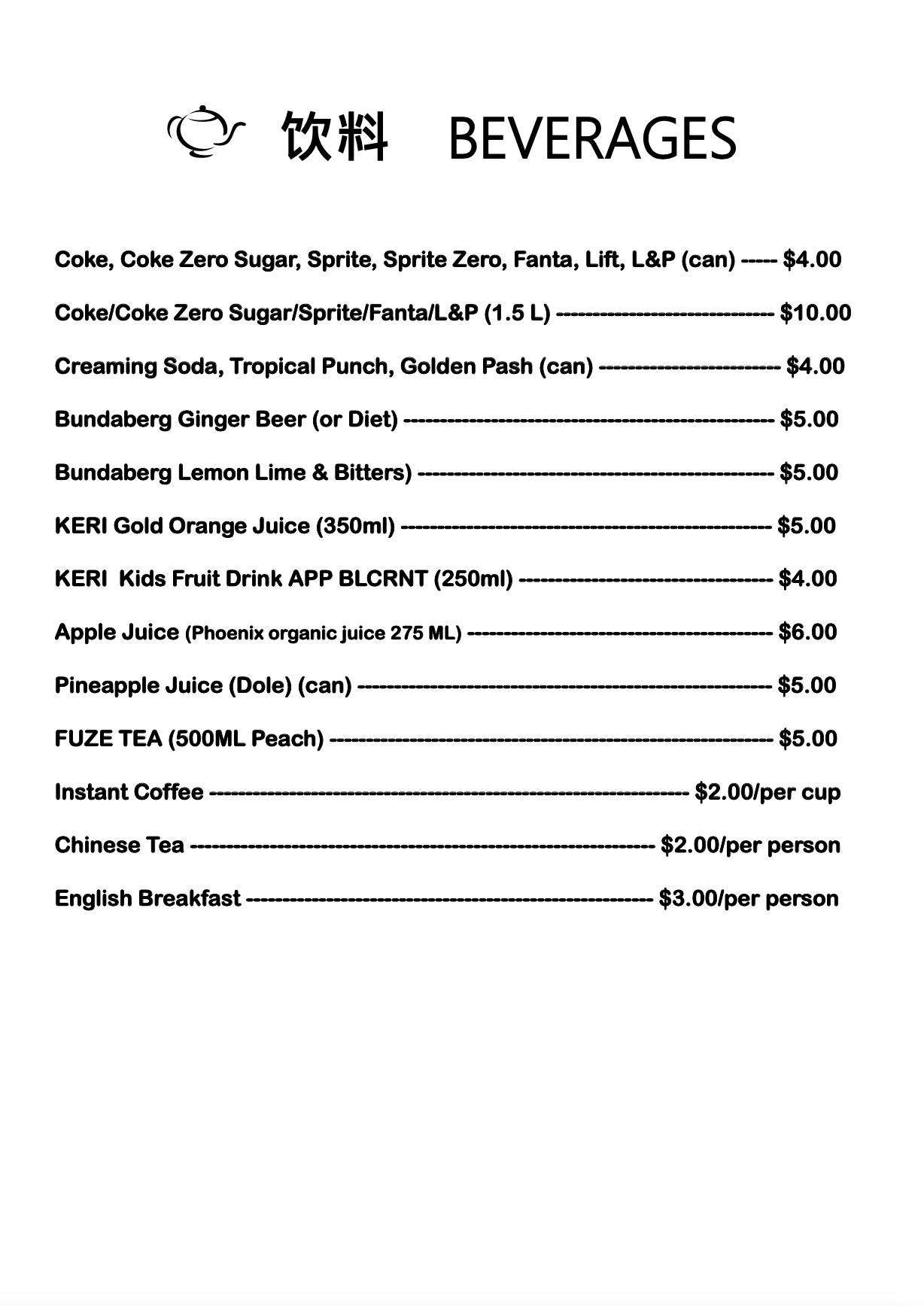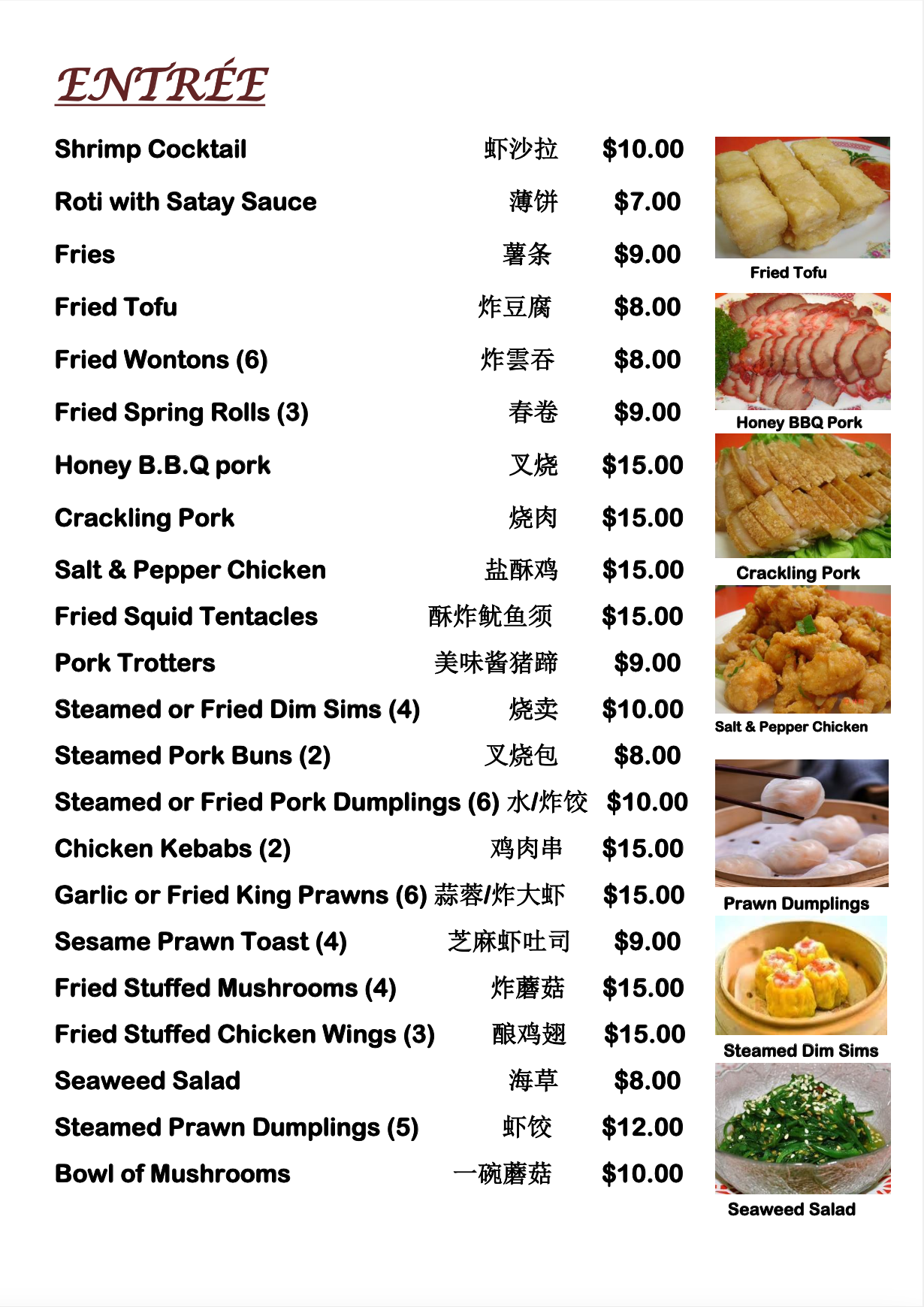 Dinner Menu